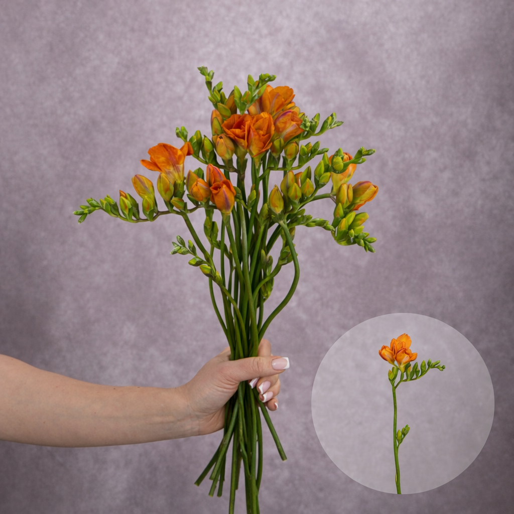 10 stems per bunch Country of Origin: Canada Main Colour: Orange Height: 45 CM