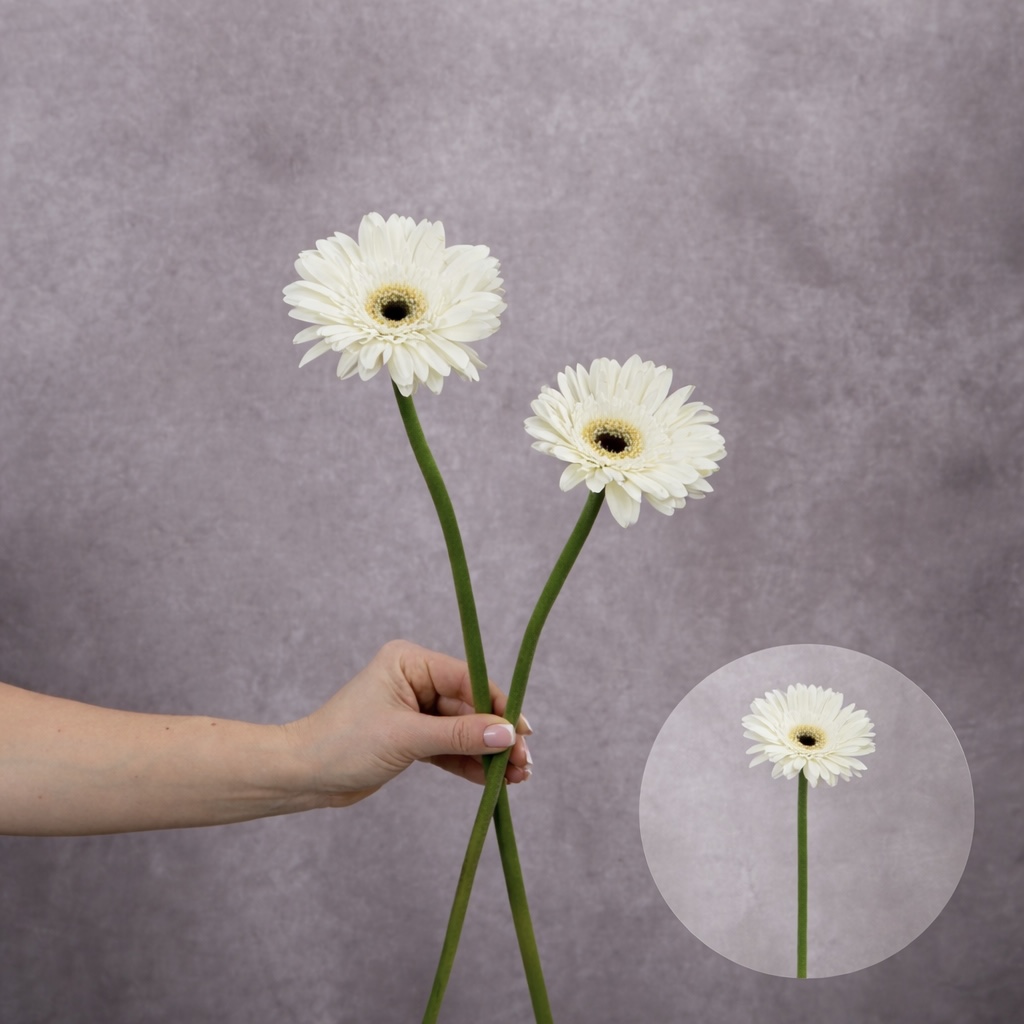 Gerbera White (Black Center) 2 stems per bunch